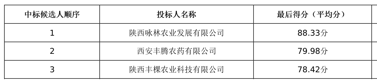 | ******有限公司 | 陕西省西安市未央区石化大道230号欧凯农资市场14排2号 | 综合评分法 | 否 | 297,800.00元 | 88.33 |