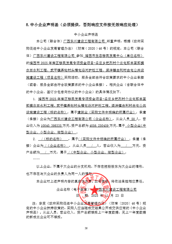 二、项目名称:靖西市2025年库区移民发展专项资金项目-壬庄乡把烈村个立屯那羊至那摸农田水利工程、武平镇弄帖村头槽屯沿河护栏工程、渠洋镇由利村由屯公共设施建设工程